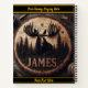 Eine detaillierte Holzschnitzerei zeigt einen majestätischen Elch inmitten von hohen Bäumen und wild lebenden Tieren, das handwerkliche Können und die Schönheit der Natur. HINWEIS zum Ändern von Text- oder Grenzfarben mithilfe des Entwurfstools Bearbeiten