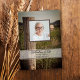Erleben Sie Ihren Liebsten, nachdem Sie mit der charmanten Holzzaun Post Farm Celebration of Life Memorial Invitation. Dieses Land chic Custom Ranch Thema Beerdigung oder Tod Tribute einladen ein rustikales Bauernfoto von einem Stacheldrahtzaun aus Holz mit einem runden Heuballen und grünen Weide im Hintergrund. Erhältlich als gedruckte Einladung zum Verschicken und/oder als digitaler Download für den einfachen digitalen Austausch online. Einzigartige Inspiration oder Idee für ein Cowgirl, Cowboy, Reiter oder Bauer.
