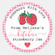 Homemade Strawberry Jam Rustic Pink Gingham Runder Aufkleber