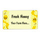 Honigbienen Honigwabenkolben mit Bienenkunst, die auf einer Honigwabe mit goldenem Honig schwimmt. Dieses Design ist ideal für Imker oder Zuhause-Crafters, um eine persönliche Touch zu individuellen Seifen, Kerzen oder Rezepten hinzuzufügen, einfach Ihren eigenen Text hinzuzufügen, oder klicken Sie auf Anpassen Es, um Schriftart, Größen, Hintergrundfarben und vieles mehr zu ändern, sogar rett Ihr Design für später.