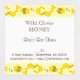 Honigbienen-Honigwabenaufkleber mit Schrift- und Blockbriefen und Vintager Bienenkunst, die auf einer Wabe mit goldenem Honig wütet, und essbare Bereiche für Honig, Ihren Firmennamen, Ihre Adresse und Ihr Gewicht.