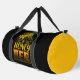 This striking black and yellow duffle bag features a detailed illustration of a honeybee, set against a backdrop of honeycomb patterns. The bold text "HONEY BEE" proudly highlights this essential insect. Perfect for beekeeping enthusiasts, nature lovers, or anyone who appreciates the vital role bees play in our ecosystem. Edit color of the bag caps and body in the Design tool to your favored colors.