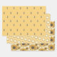 Drei aufeinander abgestimmte Muster von Honigbienen, goldenen Waben und Sonnenblumen auf hellgelbem Hintergrund. Imker - mit diesem Papier verpacken Sie Ihre kleineren Bienenwachs-Produkte (Kerzen, Lippenbalsam) oder Honiggläser für einen besonderen süßen Anlass.