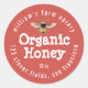 Étiquettes de pot de miel moderne et simple avec le texte miel organique et votre nom d'entreprise et votre site Web ou adresse en blanc stylisé typographie sur un arrière - plan rouge chaud, dispose d'une image d'abeille vintage. Il suffit d'ajouter votre nom, le nom du produit et le poids au étiquette. Conçu exclusivement pour les apiculteurs par Happy Dolphin Studio. Si vous avez besoin d'aide ou de produits correspondants, veuillez nous contacter à happydolphinstudio@outlook.com .
