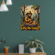 Dieses fantasievolle Kunstwerk zeigt einen Bären, der als Feuerwehrmann gekleidet ist, einen Helm und eine Sonnenbrille, in einem großen Vogelnest sitzend und eine akustische Gitarre spielt. Zwei Bienen schweben in der Nähe, und ein Glas Honig sitzt im Nest. Der Hintergrund ist ein lebendiger, grüner Wald, in dem unten mutig "Liebe mein Honig" dargestellt wird. Die dicken, strukturierten Pinselstriche verleihen der Szene ein charmantes und herzliches Gefühl.