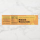 Honigwabetikett für die 4,5"-Standard-Kunststoffboxen für Wabenhonig, die zur Umhüllung über die Vorderseite, die links Seite und die Rückseite des Behältnisses bestimmt sind (rechts auf dem Vorschaubild dargestellt). Mit einer Honigpfanne und Tropfhonig mit dem Namen des Imperiums oder Imkers, Kontaktinformationen und Nettogewicht. Fakten zur Honigernährung auf der Seitenleiste, angepasst an die Anzahl der Servierungen pro Container. Beschreiben Sie Ihr Produkt oder Ihre Bibliothek ausführlicher mit optionalen Informationen auf der Website und Honig Säugling-Warnhinweisen auf der Rückseite der Wabenhonigbox.
