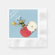 Eine niedliche Honigbiene hält einen Honigstock fest, der mit Honig tropft. In dem Text steht Shana Tova auf Englisch und Hebräisch, L'Shana Tova. Sie können diese Karte leicht anpassen, indem Sie die Hintergrundfarbe ändern und/oder den englischen Text ändern oder das Hebräische löschen.