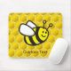 Lächelnder Cartoon über nahtlosen Bienenstock-Hintergrund.