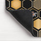 Dieses zeitgenössische Design zeichnet sich durch ein geometrisches goldenes Bienenmuster, Hummeln und einen schwarzen Farbhintergrund aus.