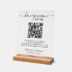 Minimalist and elegant black and white design on a white background, with customizable text in a modern font. To generate a QR code, just enter your honeymoon registry page URL in the designated box. When guests scan the QR code with their smartphone, they will be directed to your honeymoon registry page where they can contribute to your honeymoon fund.