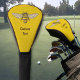 Honigbiene mit offenen Flügeln. Benutzerdefinierte Hintergrundfarbe. Eigener Text.