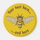 Honigbiene mit offenen Flügeln. Benutzerdefinierte Hintergrundfarbe. Zwei Textfelder im Kreis.
