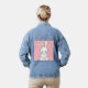 Dieses niedliche Kaninchen auf einem zarten rosa Hintergrund sieht so charmant und lustig aus, dass es nicht umhin kann, das Auge zu erfreuen und Sie zum Lächeln zu bringen. Dieses Design spiegelt die verspielte Freude des Frühlings und des Glücks wider und eignet sich perfekt für Kinder, Kaninchenfreunde und alle, die bezaubernde Kunst schätzen. Es wird eine wunderbare Dekoration für Denim Jacket sein und eine fabelhafte Atmosphäre schaffen.