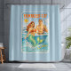 “Hooked Up” blends classic pin-up charm with coastal fishing humor. Featuring a rugged fisherman and flirty mermaid in a playful offshore fantasy scene, where she grabs the hook and flicks her jewel green tail. Sun soaked vintage colors, old-school poster style, and just the right amount of sass make this sky blue shower curtain a fun way to bring to ocean energy into your bathroom decor.