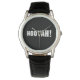 Uhr, Vintage Männeruhr mit schwarzem Lederarmband