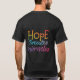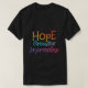 Dieses inspirierend T - Shirt-Design enthält den Satz "Hoffnung schafft Wunder" in fett gedruckten, farbigen Buchstaben vor einem dynamischen, abstrakten Hintergrund. Das Design vermittelt eine Botschaft des Optimismus, der Widerstandskraft und des Powers der Hoffnung, außergewöhnliche Ergebnisse zu erzielen. Sie ermutigt die Träger, die Hoffnung als Katalysator für einen positiven Wandel zu sehen und an die Möglichkeit zu glauben, das Unmögliche zu erreichen.