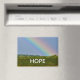 3.5 inch x 2.5 inch magnet with an image of a rainbow over a field and the word HOPE