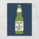 Diese Postkarte eignet sich hervorragend, um Ihren Lieblingsbierliebhabern eine fröhliche Nachricht zu schicken. Es zeigt eine grüne Glasbierflasche mit einem cremefarbenen Set vor marineblauem Hintergrund. Das Etikett der Bierflasche lautet HAVE A HOPPY DAY in marineblauer Schrift. Auf der Rückseite können Sie Ihre eigene Nachricht schreiben.