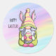 Dieses Design zeichnet sich durch einen Gnome als Osterhase aus, der ein Ostereier in pastellfarbenen Aquarellfarben in Regenbogenfarben hält. Hoppy Oaster 🐰!