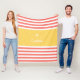 Ein modernes, breites Muster aus Streifen Fleece Decke in Korallenorange und hellgelb. Personalisieren Sie das, indem Sie Ihren Namen unter dem schicken Retro-Logo hinzufügen.