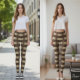 Horizontal Stripe Brown Champagne Metallic Glossy Leggings