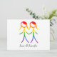 Diese Save the Date Karte zeichnet sich durch ein schönes und einfaches Design aus, um Ihre kommende Hochzeit bekannt zu geben. Die Grafik zeigt zwei Frauen, in Form von eleganten Strichmännchen, die Händchen halten. Die Figuren sind in einem wunderschönen Regenbogen gefärbt und symbolisieren Liebe und Diversity. Diese Karte ist ein wunderbarer Weg, um eine kohärente und sinnvolle Touch in Ihre Schreibwaren zu bringen und gleichzeitig den Gästen eine klare und elegante Möglichkeit zu geben, ihre Kalender zu markieren.