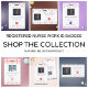 Einfach und einmalig eingetragenes Logo für die Krankenpflege, horizontales ID-Abzeichen mit einem Muster medizinischer Instrumente. Illustriert und entworfen von Patricia Alvarez.