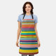 Diese Schürze ist in den Farben Blau, Grün, Braun, lila, Rot, Gelb, Orange und Rosa gehalten.