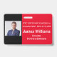 Individuelles Horizontal Symposium Abzeichen in Rot, Weiß und Schwarz. Alle Elemente können nach Ihren Bedürfnissen angepasst werden. Elemente: Name des Symposiums, Ort und Datum des Symposiums, Foto der Teilnehmer des Symposiums, Titel des Symposiums und Name des Unternehmens. Platz oben für einen Garten. Auch in vertikaler Ausrichtung in diesem Laden erhältlich.