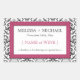 Trendfarbene und moderne Weinetiketten für Ihre Hochzeit. Das schwarz-rosa gesteppte Design/die Darstellung über einem schwarz-weißen Damaskusmuster.