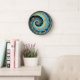 Horloge Abstraite spirale d'art fractal bleu turquoise ora