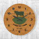 Personnalisez ce design d'horloge en bois rustique avec un motif d'agriculture avec votre propre texte. L'horloge murale acrylique est imprimée avec une silhouette de vache laitière sur une colline et un arrière - plan en faux bois. Disponible dans votre choix ou les faces rondes ou carrés.