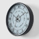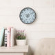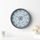 This bold, simple, classic clock design has a basic Black Roman numeral design with vintage look to it. It has circles and dotted circles, as well as a lined border around it The background is a light blue with a slight marbled effect added. You can use the easy template to add a circle of text to the center, or delete the sample text to leave it blank. When you add text, be careful that you don't add too much or it will overlap on the bottom. Donc, vous pouvez "customize it" to make any changes you would like. This is a pretty, anti-looking wall clock.