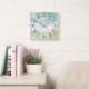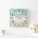 Horloge Aquarelle Abstraite à l'ambiance aérée. Couleurs douces pastel bleu, crème et blanc.