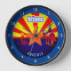 Cette horloge murale personnalisable présente une illustration vintage en rouge, jaune et bleu, inspirée du drapeau de l'Arizona. Personnalisez-le aujourd'hui avec votre propre texte et transformez-le sur place en souvenir mémorable pour tous ceux qui aiment l'État du Grand Canyon.