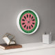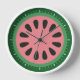 Cette mignonne horloge comporte une tranche ronde de pastèque et de fines lignes blanches au lieu de chiffres. Les couleurs de la pastèque sont entièrement personnalisables.