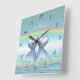 Une horloge murale avec mon design de deux cœurs de platine flottant sur l'eau sous un arc-en-ciel. Le texte personnalisable indique "70 Ans".