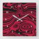 Horloge Carrée Abstract Warped Black & Red Lines