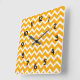 Horloge Carrée Accent orange et blanc chevron clock moderne