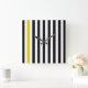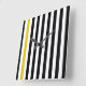 Bandes noires et blanches avec un motif en surbrillance jaune vif.