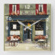 à l'original watercolor painting par Anne Ormsby of a French bistro adorns this fun wall clock.