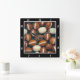 This football-themed wall clock features a playful pattern of sports balls enclosed in a sleek black frame. Designed for fans of the game, it adds a bold yet stylish statement to any space—perfect for bedrooms, game rooms, or sports-inspired interiors. It is highly customizable, allowing for changes to the colors of the clock's border and numbers (1-12) to match specific team colors. This makes it an ideal personalized gift or decor for sports fans, football teams, or themed game rooms.