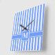 Horloge Carrée Bleu moderne bande avec Monogramme