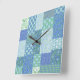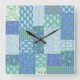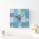 Horloge Carrée Bleu Périwinkle Floral Boho Faux Motif Patchwork