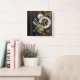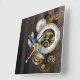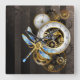 Cadran d'antiquités avec or et lances en laiton, décoré de libellules mécaniques sur arrière - plan brun rayé. Steampunk.