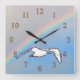 Gulwhite l is flying against a backdrop of a rainbow hued sky. Bird is outlined in rainbow colors. Above rainbow band, sky is gray, below, sky is blue. Numerals are golden with black outlines.
