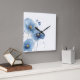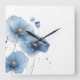Cette horloge murale acrylique est montrée avec une impression d'art de fleur bleue. Customisez cet objet ou achetez comme indiqué. Impression sous licence