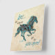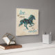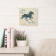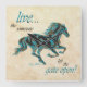 Éclairez votre maison avec cette horloge murale unique "One of a Kind" Inspirationnelle Cheval. Il comprend une silhouette de cheval Galloping en Turquoise, Noir & Or sur un Arrière - plan Tan Sandstone et la citation inspirante... "Live Like Who Left The Gate Open"! Il s'agit d'un graphisme original créé par l'artiste Kerry Miller.