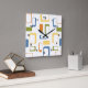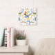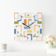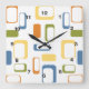 Colorful geometric shapes in the midcentury modern style and color palette for a cool retro clock face.