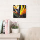 A beautiful clock with easy to read letters with a centered artwork of a becautiful bird of paradise flowers.